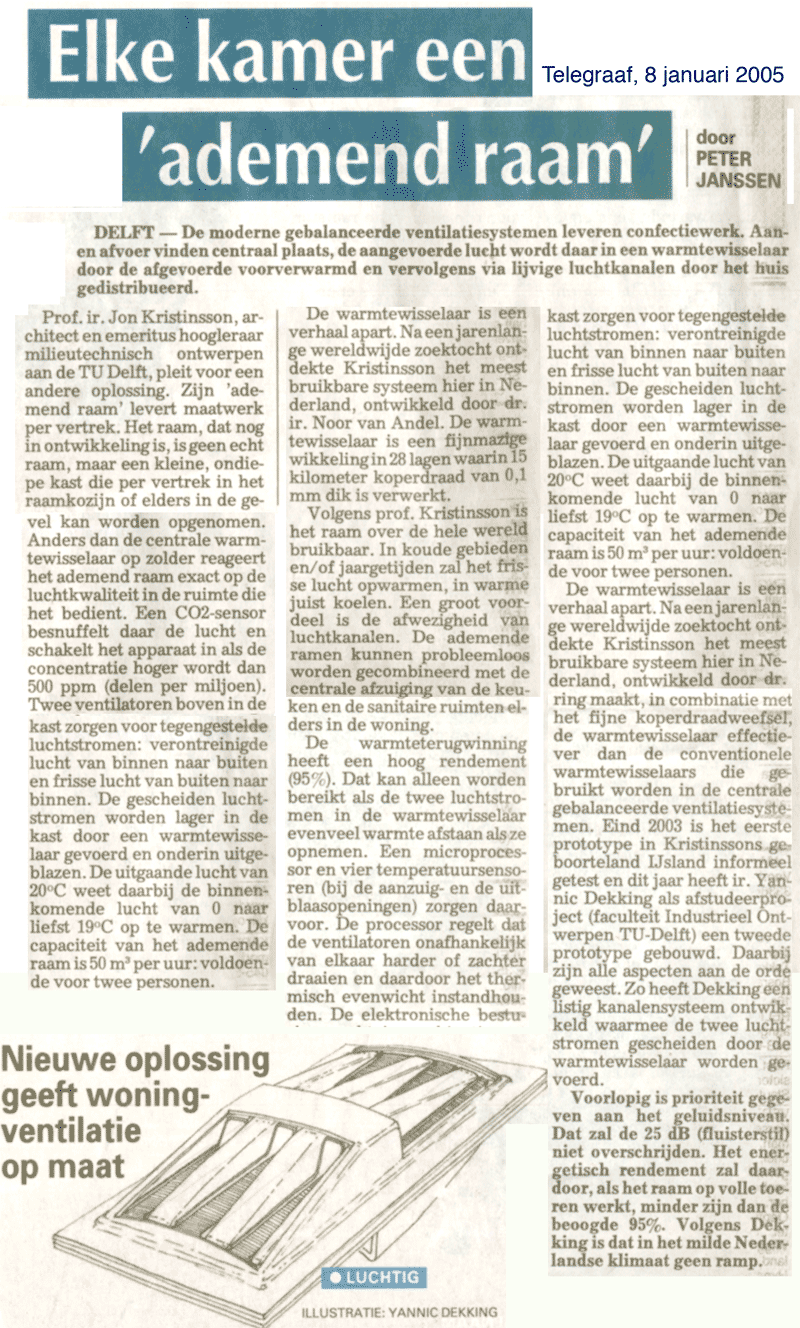 The BREATHING WINDOW is financed by Kristinsson-Reitsema BV (using the Royal/Shell Award 1998) and was sponsored by Senter (BSE program) of the Dutch Ministry of Economic Affairs. For more information contact:jon@kristinsson.nl |